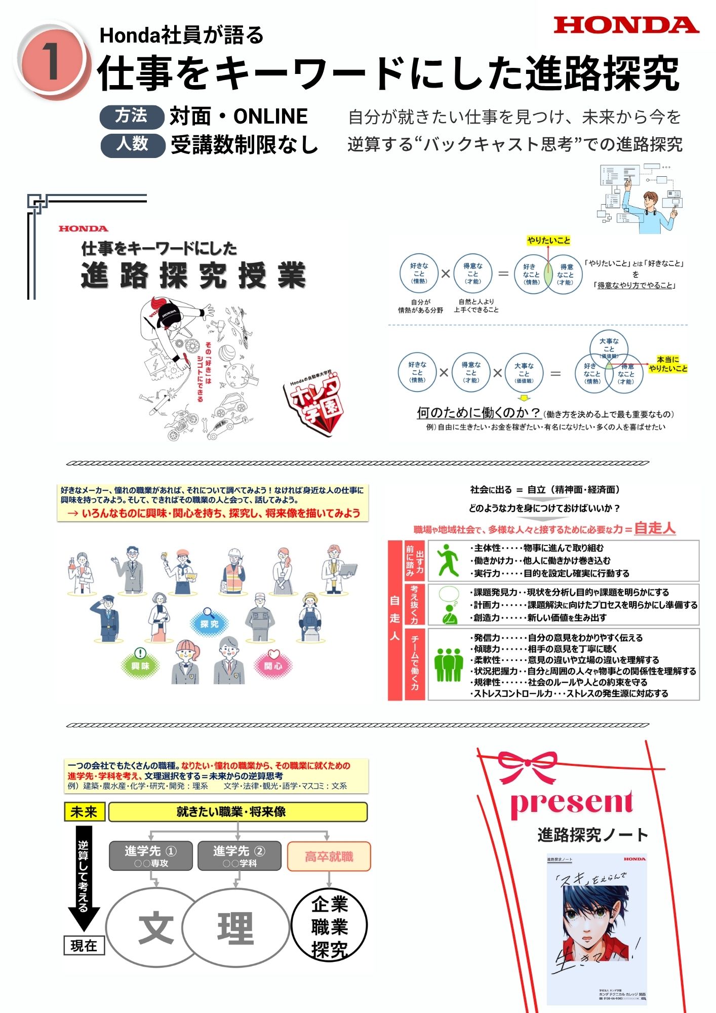 【出前授業①】Honda社員が語る。「仕事をキーワードにした進路探究授業」:授業時間50分 ※参加人数制限なし