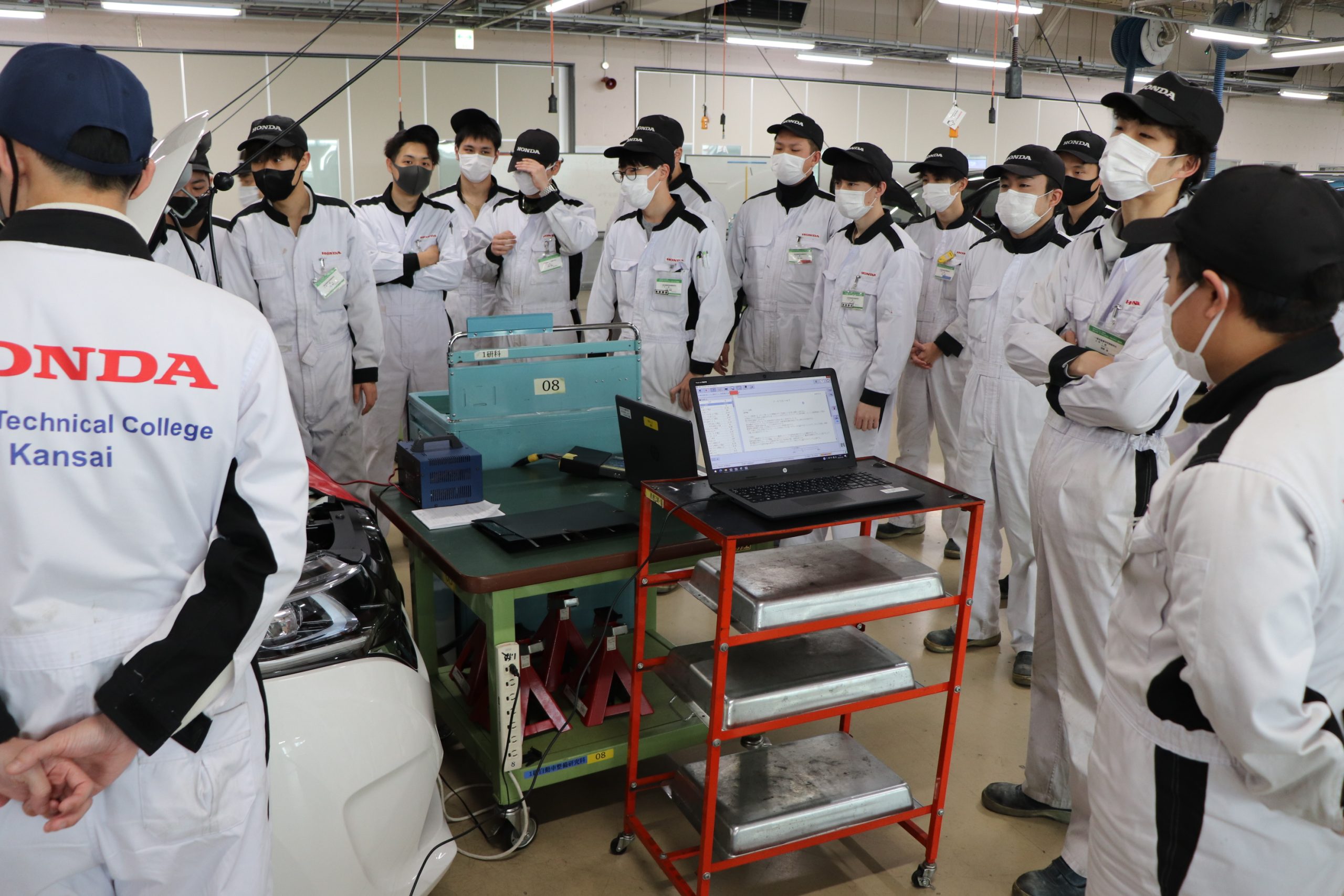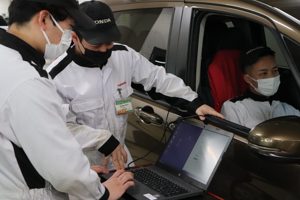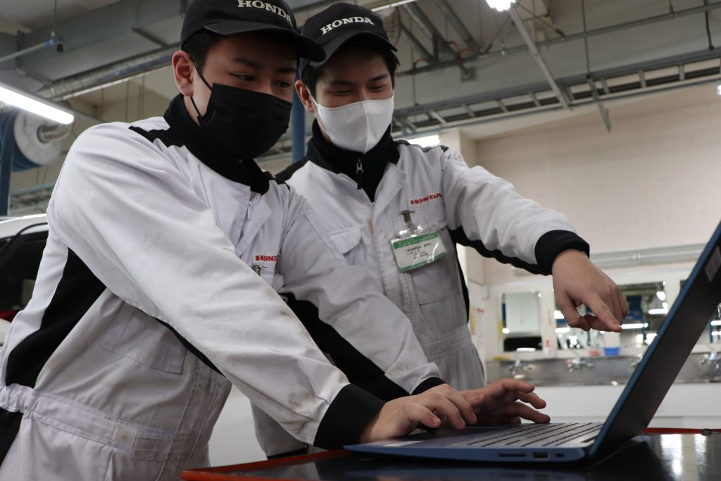 Hondaからの出張授業(サービス領域のツールと故障診断技術の習得) 2023.01.25 1月18日(水)~20日(金)の3日間、一級自動車研究開発学科 一級自動車整備士コース4年生を対象に、Hondaのサービス技術開発部門が製作している『サービスツール』とHonda Cars(四輪販売店)で実際に使用している『Honda車専用の故障診断器』を使った、診断手法とデータ分析及び実習授業を実施していただきました。 Hondaの関係者様、診断技術についての特別授業にご協力いただき、誠にありがとうございました。