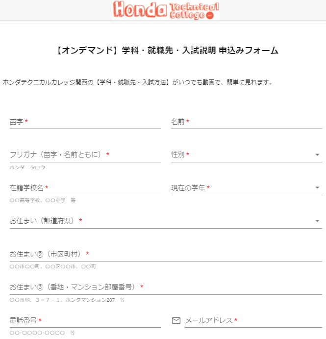 (例)申込みフォームに情報を入力する、オンデマンドで動画が見れます。